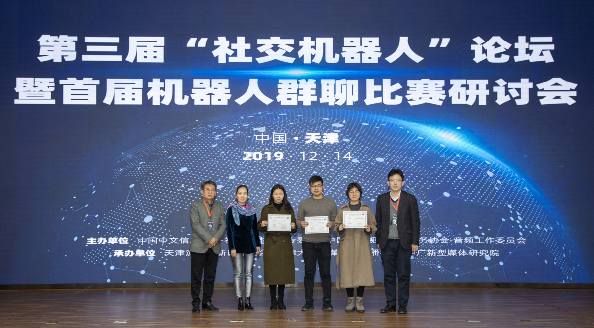 2019年12月14日,由中国中文信息学会社会媒体处理专委会和中国网络视听节目服务协会音频工作委员会指导,天津滨海高新区管委会、色情片 以及中广新型媒体研究院联合承办的第三届“社交机器人”论坛暨首届机器人群聊比赛研讨会,在滨海高新区举办。高新区管委会副主任王洪,色情片 党委常委、组织部部长贾启君在会前会见了部分专家和参赛队伍代表。